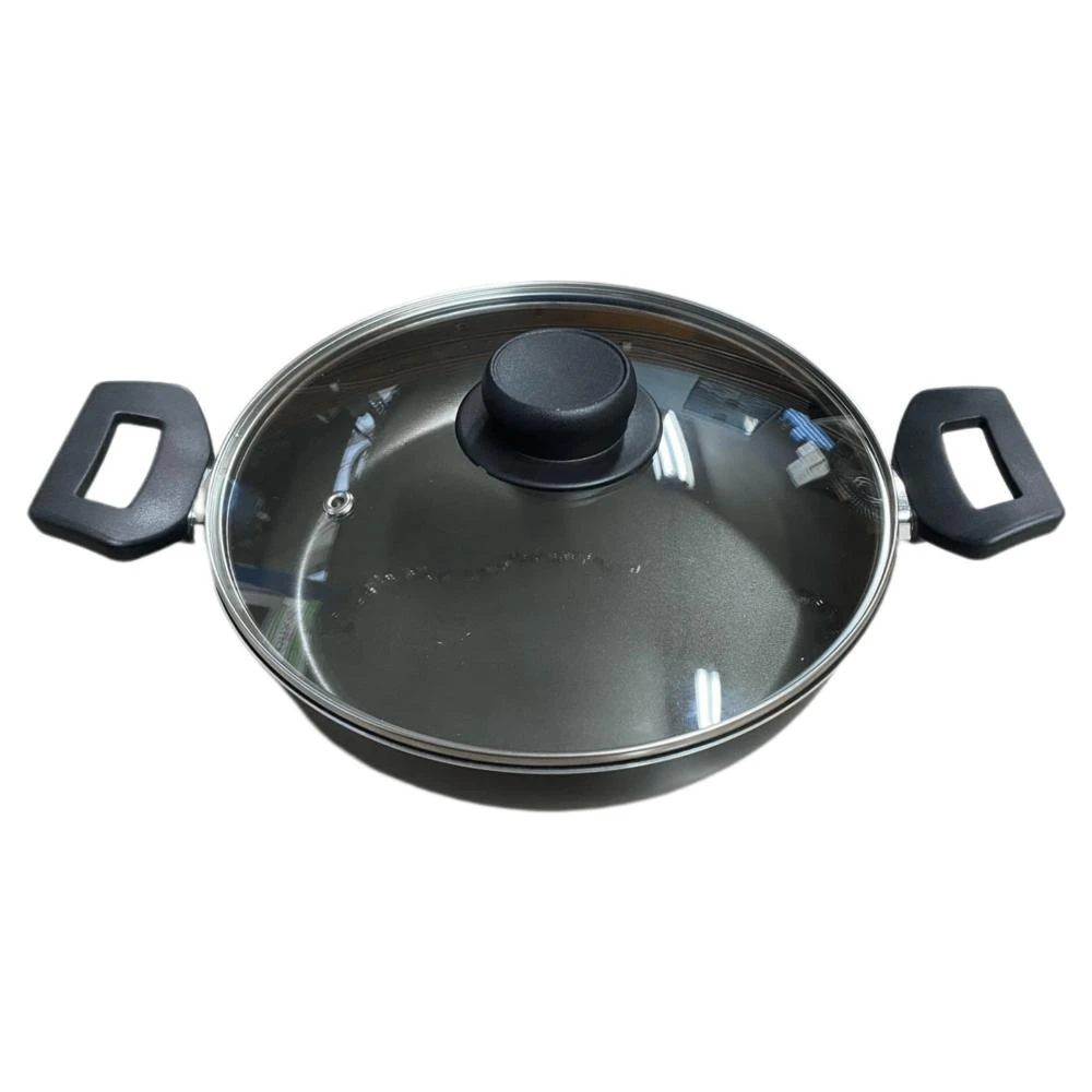 La Arrocera Multiuso Tramontina Lazio de Aluminio con Revestimiento de Antiadherente Starflon Max Negrocon Tapa de Vidrio 24 cm de diámetro 2,8 l es una pieza esencial para tu cocina. Práctica, funcional y en el moderno color rojo, va a proporcionarte momentos increíbles a la hora de preparar tus comidas. Se fabrica en aluminio con revestimiento interno y externo de antiadherente Starflon Max, material que permite una cocción más rápida y uniforme, además de facilitar la limpieza, ya que los alimentos no se pegan a su superficie. Sus asas de baquelita antitérmica y su pomo de nylon reducen la propagación del calor y protegen tus manos durante el manejo. Viene con tapa de vidrio templado con salida de vapor y borde de acero inoxidable, que ayuda y permite acompañar la preparación de la receta. Es una pieza con 24 cm de diámetro y 2,8 litros de capacidad, que se puede utilizar en cocinas a gas, eléctricas o vitrocerámicas (resistencia eléctrica), además de poder lavarse en el lavavajillas.Limpieza FácilAntiadherenteHecho sin PFOA24 CentímetrosAluminioApta para Lavavajillas Incluye 1 ArroceraGarantia 1 Año