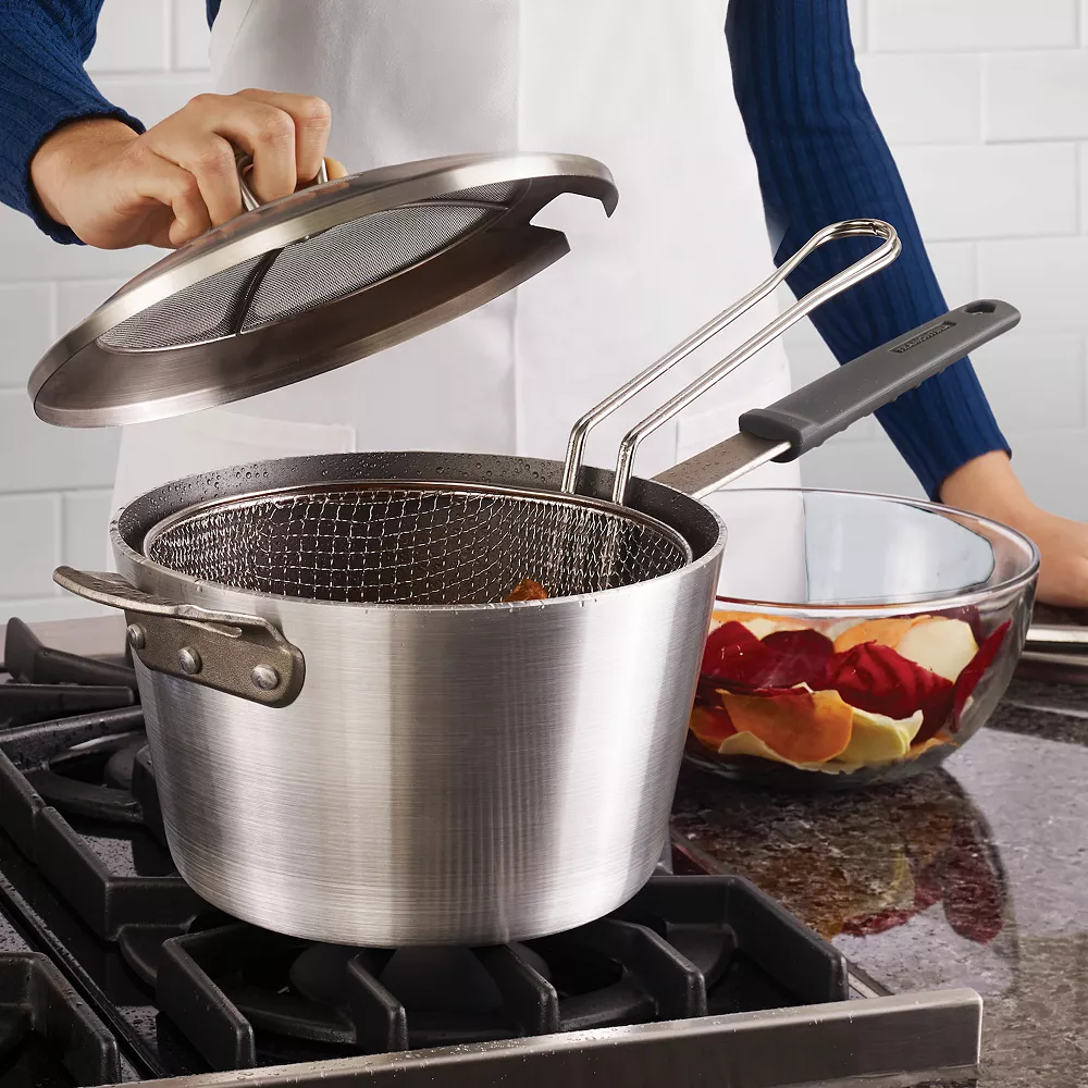Skip fast food and fire up Tramontina’s Professional Deep Fryer for crispy fried fish, chicken or potatoes at home. Its clever rivetless design provides easy cooking and effortless cleanup, while maintaining all the strength and durability of a traditional riveted handle assembly.