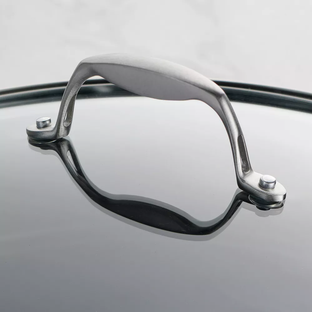 - Heat- and shatter-resistant tempered glass lids with wide stainless steel rim