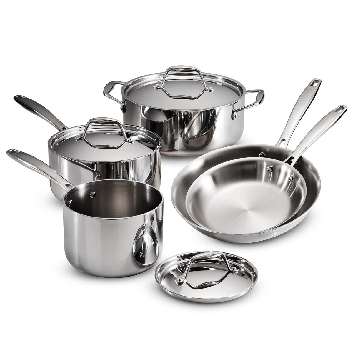 Get ready to whip up your favorite culinary masterpieces! Tramontina”s 8 Pc Tri-Ply Clad Stainless Steel Cookware Set includes the essentials to equip your first kitchen or update your current one. Each piece is made with a three-layer construction that allows for even heating on any cooktop! Ergonomically designed, cast stainless steel handles are riveted for a comfortable grip and easy control.