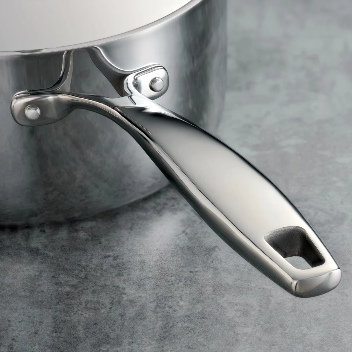 – Ergonomic, riveted cast stainless steel handles (Seattle style)
