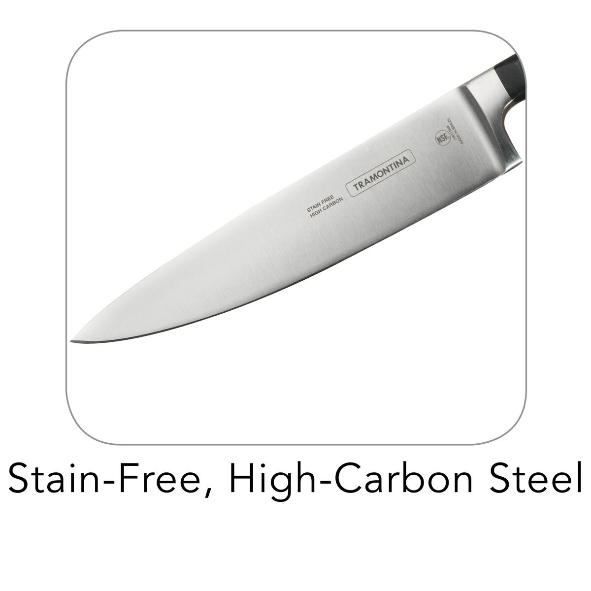 If you”re an energetic slicer and dicer, you”ll want Tramontina”s 8 in Cook”s Knife in your kitchen. Its wide blade is perfect for cutting through tougher fruits and veggies while putting some room between your knuckles and the cutting board. Built to handle daily use, you”ll definitely want this one within reach. Tramontina”s knives are forged from a single solid piece of premium high-carbon stainless steel for strength and durability.